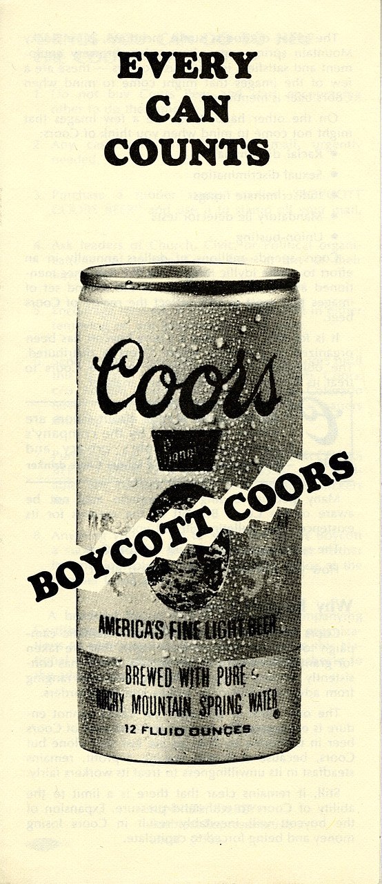 Community boycotts of Coors were nothing new by the 1970s. Previously the company had been boycotted by the Black and Latino communities over its discriminatory treatment of the workforce. In 1970 the company was cited by the Colorado Civil Rights Commission for firing an employee due to his race. Additionally, Coors had been supporting scab grape growers who fought the boycott that was organized by the United Farm Workers in California. This was another motive for Chicano activists to organize a boycott of the beer. In 1977 another boycott of the company began.